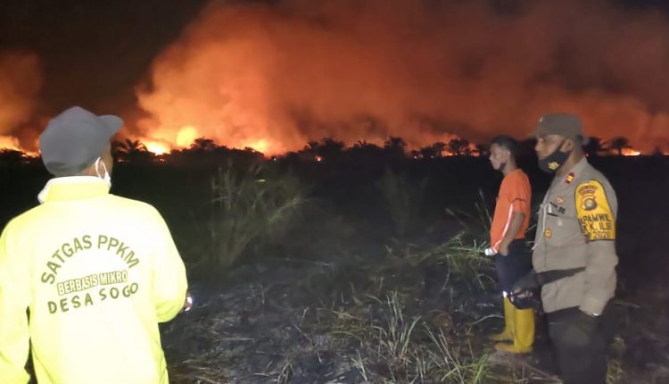 Polres Muaro Jambi dan Tim Pemadam Gerak Cepat Padamkan Api di Lahan Terbakar Seluas 40 Ha Desa Sogo