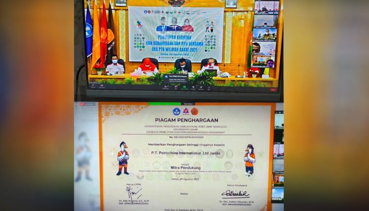 “Alhamdulilah via virtual meeting, kami mendapatkan kembali piagam penghargaan dari Universitas Jambi, atas dukungan dan partisipasi dari manajemen SKK Migas – PetroChina International Jabung Ltd., atas terselenggaranya KKN Kebangsaan dan KKN Bersama di Provinsi Jambi,” ujarnya.