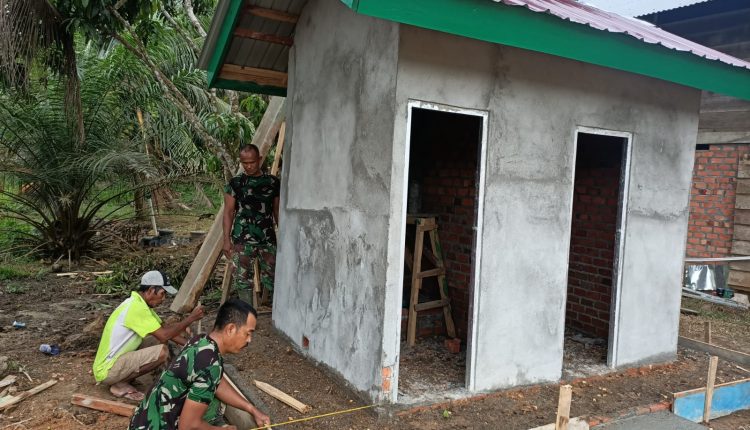 Satgas TMMD bersama Warga Bahu Membahu Tuntaskan Pembangunan MCK Umum