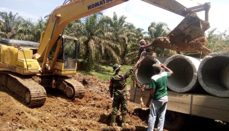 SERAMBIJAMBI.ID, TEBO – Komandan SSK TNI Manunggal Membangun Desa (TMMD) ke-112 Kodim 0416/Bungo Tebo, Kapten Inf Zulkarnaini menyebutkan, 3 dari 6 titik sasaran gorong-gorong selesai dipasang.
