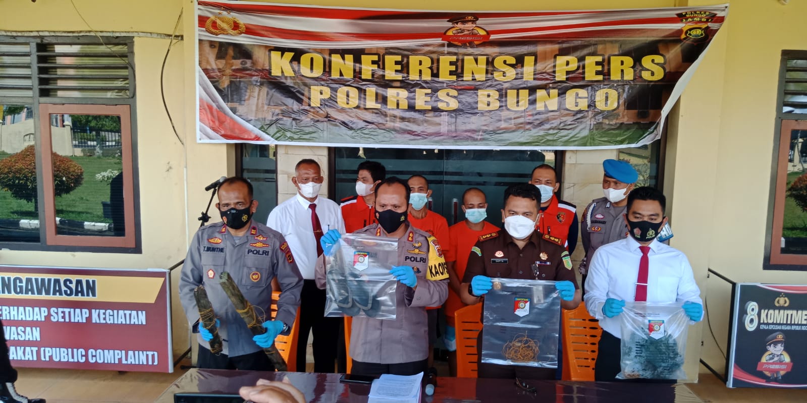 Kapolres Bungo, AKBP Guntur Saputro, SIK, MH mengatakan hal itu saat pres rilis gelar perkara di Mapolres Bungo dihadiri Kajari Bungo Sapta Putra, SH, MH, Senin (6/12/21) siang.