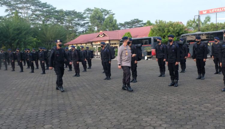 Pemberangkatan 105 personel Satbrimob Polda Jambi yang BKO ke Polda Metro Jaya dalam rangka untuk membantu melakukan pengamanan Unras (unjuk rasa).