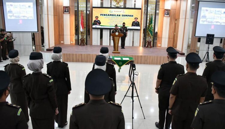 SERAMBIJAMBI.ID, JAMBI – Kepala Kejaksaan Tinggi Jambi Sapta Subrata memimpin upacara pengambilan sumpah pada 105 ASN di lingkungan Kejaksaan Tinggi Jambi Tahun Anggaran 2019 bertempat di Aula Jaksa Agung Suprapto, Rabu, 8 Juni 2022.