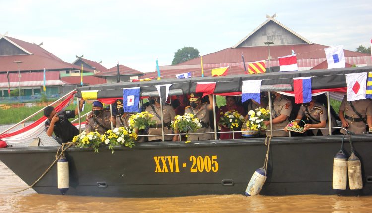 Kali ini Wakapolda Jambi Brigjen Pol Drs Yudawan R memimpin upacara Tabur Bunga di Sungai Batanghari Jambi bersama Pejabat Utama Polda Jambi.