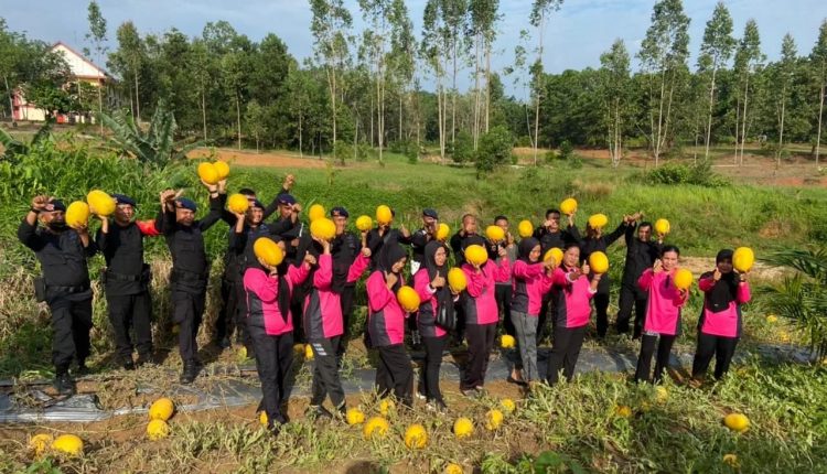 Jaga Ketahanan Pangan, Batalyon B Pelopor Satbrimob Polda Jambi Panen Semangka