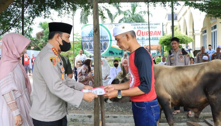 ” Hewan kurban tersebut diantaranya dari Kapolresta Jambi serta personel Polresta Jambi dan Polsek jajaran,” ujarnya.