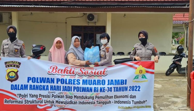 SERAMBIJAMBI.ID, MUAROJAMBI – Kapolres Muaro Jambi AKBP YUYAN Priatmaja SIK MH melalui kasi Humas AKP Amradi SE mengatakan Polwan polres Muaro Jambi melaksanakan kegiatan bakti sosial dalam rangka Peringatan Hari Jadi Polwan Ke-74 tahun 2022. Pada hari Jum’at (5/8/2022).