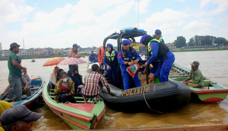 Ratusan Paket Sembako Diberikan Ditpolairud Polda Jambi ke Nelayan dan Masyarakat Pesisir Sungai Batanghari