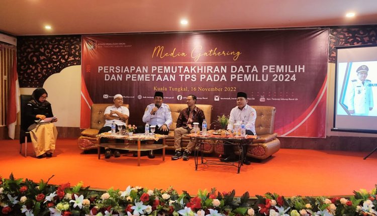 SERAMBIJAMBI.ID, TANJAB BARAT – Komisi Pemilihan Umum (KPU) Kabupaten Tanjab Barat menggelar Media Gathering Persiapan Pemuktahiran Data Pemilih dan Pemetaan TPS pada Pemilu 2024 bertempat di Aula Tungkal Hotel, Rabu (16/11/22)