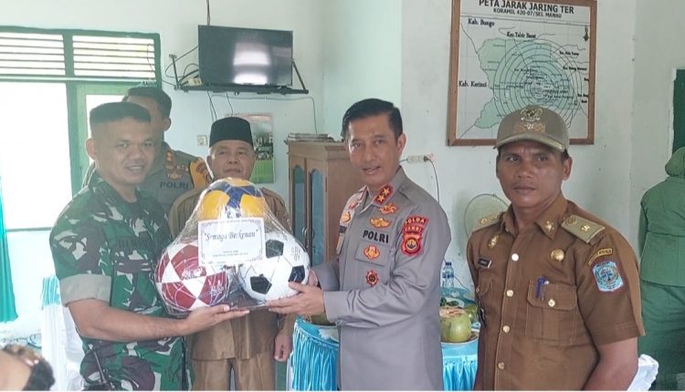 Ditengah perjalanan Kapolda Jambi menyambangi Koramil 420-07 Sungai Manau didampingi Kapolres Merangin AKBP Dewa Ngakan Nyoman Arinanta dan disambut Danramil Lettu Hengki beserta anggota Koramil, Kepala Desa Sungai Manau dan ibu-ibu persit Koramil.