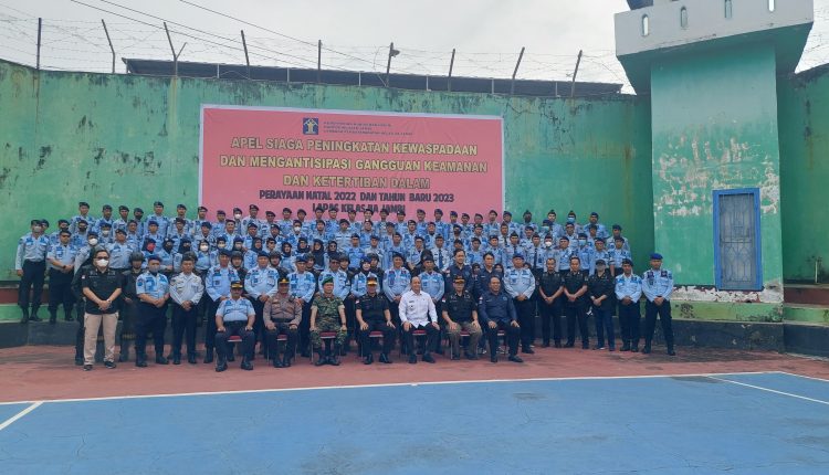 SERAMBIJAMBI.ID, JAMBI – Kementerian Hukum dan HAM Provinsi Jambi menggelar Apel siaga peningkatan kewaspadaan dan Antisipasi gangguan keamanan dan ketertiban dalam perayaan Natal 2022 dan Tahun Baru 2023 bertempat di Lapas Kelas IIA Jambi, Jum’at (23/12/22).