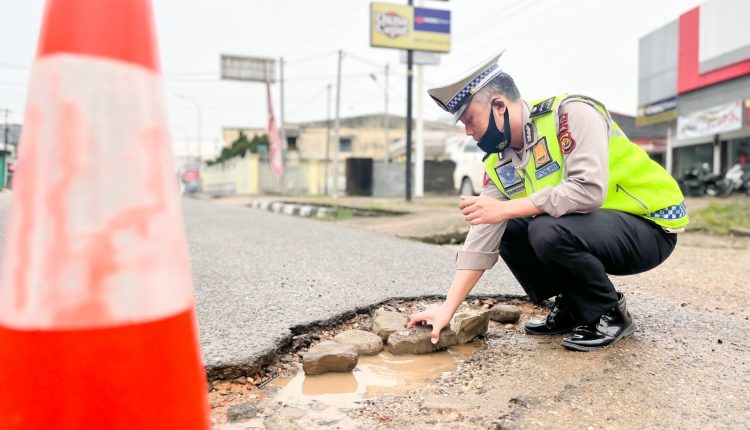 Antisipasi Kecelakaan, Personil Satlantas Polresta Jambi Survey Jalan Berlubang