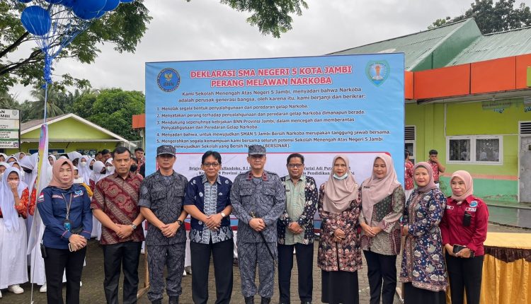 SERAMBIJAMBI.ID,JAMBI – Dalam rangka mengantisipasi masuknya peredaran gelap narkoba di lingkungan sekolah, Badan Narkotika Nasional Provinsi Jambi menggelar Deklarasi Launching Sekolah Bersinar serta Menggelorakan lagu Mars BNN bertempat di, di SMA N 5 Kota Jambi, Kamis (19/1/23).
