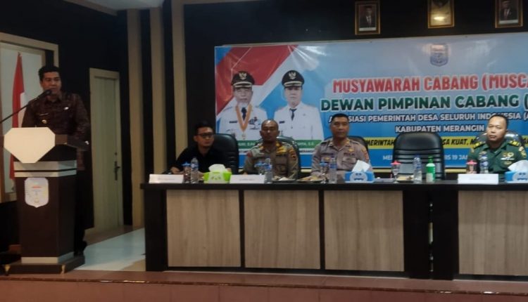 Muscab DPC Apdesi Kabupaten Merangin kali ini mengambil tema, ‘Pemerintah desa hebat, desa kuat, Merangin Mantap’. Muscab itu dihadiri Ketua DPD Apdesi Provinsi Jambi Syamsul Fuad, Plt Ketua DPC Apdesi Kabupaten Merangin Juarno.