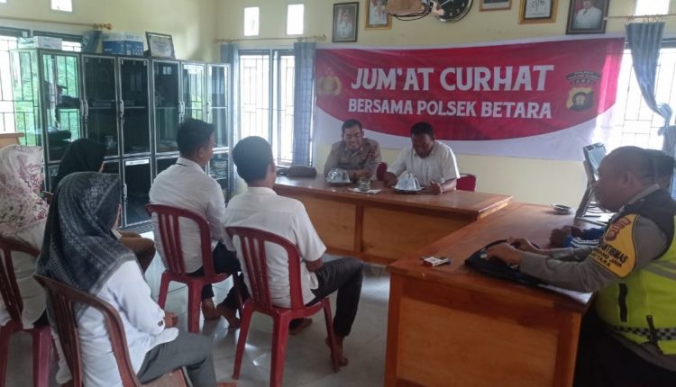 SERAMBIJAMBI.ID, TANJAB BARAT – Kepala Kepolisian Sektor (Polsek) Betara AKP Dasep Nurdin Ansori, SH, MH Polres Tanjab Barat kembali menggelar kegiatan Jumat Curhat.
