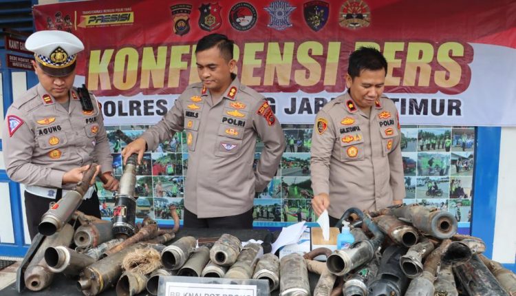 Kapolres Tanjab Timur AKBP Heri Supriawan saat menggelar konferensi pers menyebutkan bahwa Satlantas Polres Tanjab Timur telah menindak 462 kendaraan dab menyita puluhan kendaraan yang berknalpot brong atau tidak sesuai spesifikasinya dalam Gakkum Berlalulintas.
