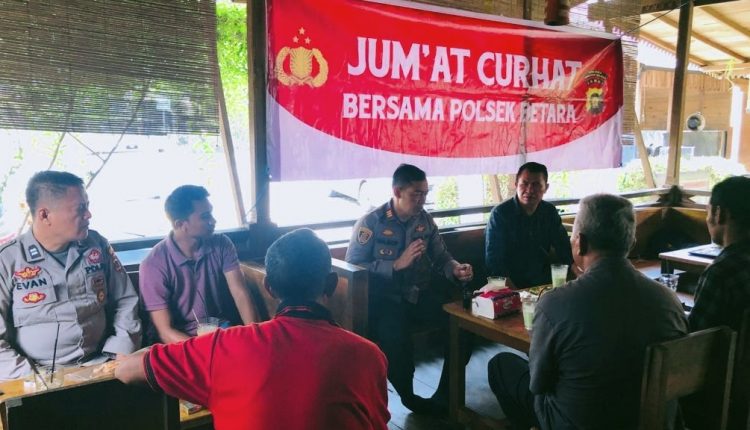 SERAMBIJAMBI.ID, TANJAB BARAT – Kapolsek Betara AKP Dasep Nurdin Ansori, SH, MH kembali menggelar kegiatan Jumat Curhat, duduk langsung bersama masyarakat untuk mendengarkan keluhan maupun menyerap informasi dari masyarakat, Jumat (3/2/23) di Gerai UMKM Sukerejo Parit Panglong Kelurahan Mekar Jaya.
