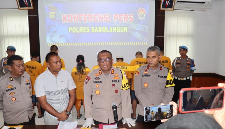 Kapolres Sarolangun AKBP Imam Rachman S.IK saat menggelar konferensi pers menyebutkan Sat Resnarkoba Polres Sarolangun mengamankan 18 pelaku dari 12 Laporan Polisi dengan jumlah barang bukti 13,6i Gram narkoba jenis sabu dan dua diantaranya adalah wanita.