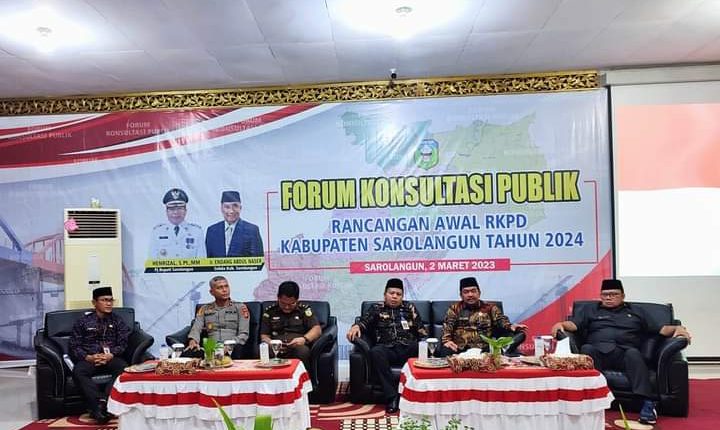 “Dari pagi kita sudah melaksanakan forum konsultasi publik terhadap rencana RKPD untuk tahun 2024. Forum ini tujuannya tidak lain ingin menerima masukan, dalam rangka meningkatkan kualitas dalam perencanaan pembangunan di Sarolangun”, Ungkap Henrizal.