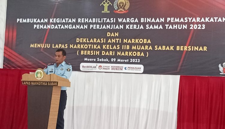 Pemberian penghargaan Lapas Narkotika Kelas IIB Muarasabak kepada sejumlah mitra kerjasamanya berlangsung di ruang Pola Lapas setempat, bersamaan dengan Kegiatan Pembukaan Rehabilitasi Warga Binaan Lapas Narkotika oleh Kakanwil Kemenkumham, Drs Tholib, SH, MH.