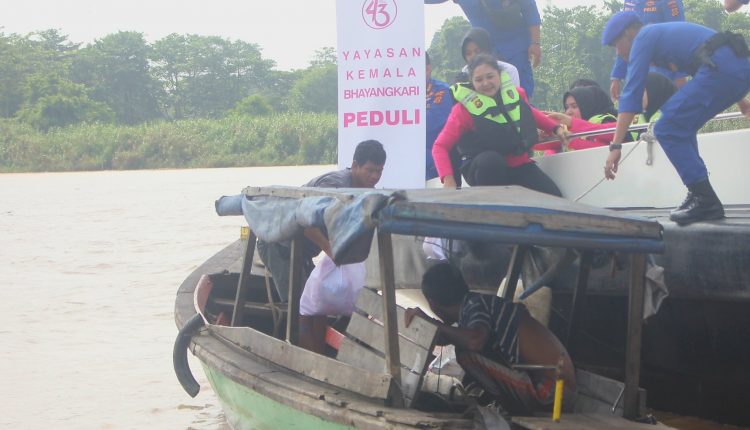 Sisir Sungai Batanghari, Ketua Bhayangkari Daerah Jambi Bagikan Sembako ke Masyarakat dan Nelayan