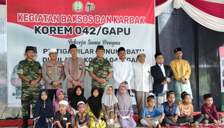 SERAMBIJAMBI.ID, TANJABBARAT – Korem 042/Gapu bekerjasama dengan PT. TPGB (Tiga Pilar Gunung Batu) menggelar Bantuan Pendidikan bagi Anak Yatim Piatu dan memberikan paket sembako di wilayah Kabupaten Tanjung Jabung Barat.