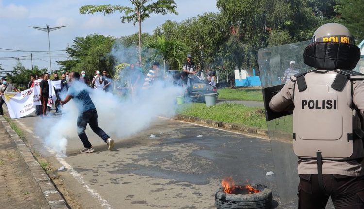 Karena situasi semakin panas, Polres Tanjab Timur menerjunkan Tim Dalmas serta menembakkan Gas Air Mata dan Water Canon dikarenakan terdapat salah satu masyarakat yang terindikasi sebagai Propokator yang telah diamankan Satgas Tindak serta penguraian massa pendemo.