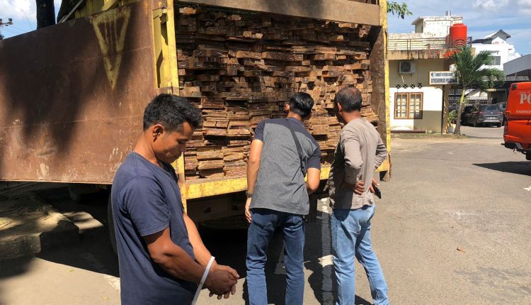 ” Berdasarkan informasi tersebut, Tim menemukan dan mengamankan 1 (satu) unit kendaraan truk merk Mitsubishi Canter HD125PS Warna Kuning tanpa Nopol yang bermuatan kayu gergajian jenis rimba camburan sebanyak kurang lebih 6 M3 sedang melintas di Jalan Lintas Sungai Gelam, RT. 09, Desa Sungai Gelam,” ujarnya, Rabu (21/6/23).