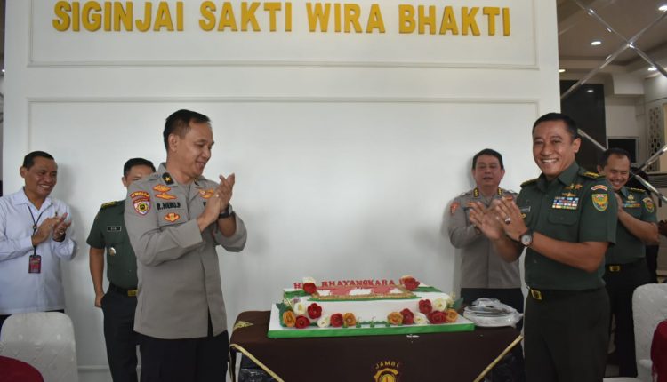 Sambangi Mapolda Jambi, Kasrem 042 Gapu Berikan Kejutan Hari Bhayangkara ke 77