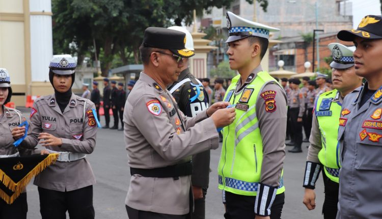 Apel turut dilakukan pemasangan pita oleh Irwasda Polda Jambi kepada perwakilan personil Ditlantas, Dinas Perhubungan dan Polisi Militer.