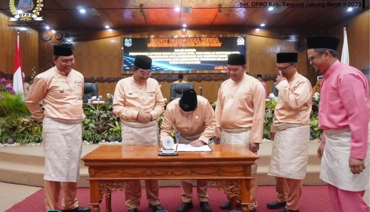 SERAMBIJAMBI.ID, TANJAB BARAT – Dewan Perwakilan Rakyat Daerah (DPRD) menggelar Rapat Paripurna Kedua dalam rangka Penandatanganan Nota Kesepakatan antara Bupati Tanjung Jabung Barat (Tanjabbar) dengan DPRD Tentang Perubahan KUA dan PPAS Tahun Anggaran 2023, Kamis (10/08/23).