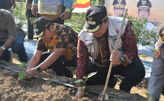 Dalam kegiatan tersebut, Penjabat Bupati Sarolangun Bachril Bakri, beserta jajaran melakukan penanaman cabe merah dan jagung secara serentak, serta memberikan bantuan sosial dalam pengentasan kemiskinan ekstrem.