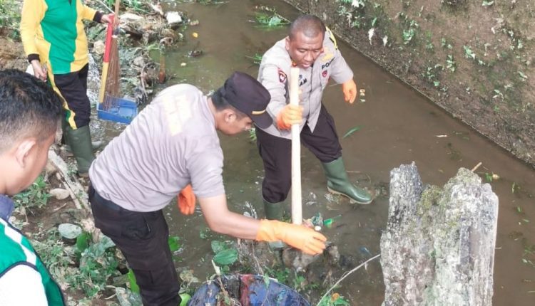 Jaga Sungai, Kapolres Sarolangun Turun Langsung Bersihkan Sampah di Aliran Sungai Beringin
