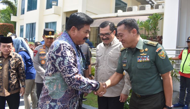 SERAMBIJAMBI.ID, JAMBI – Kasrem 042/Gapu Kolonel Inf Ali Aminudin S.E., M.M. bersama Gubernur dan Forkopimda Jambi, para Bupati dan segenap aparat pemerintah lainnya, mendampingi Menteri Agraria dan Tata Ruang/Kepala Badan Pertanahan Nasional (ATR/BPN) Hadi Tjahjanto pada Kunjungan Kerjanya di Provinsi Jambi, Kamis 24/08/2023.