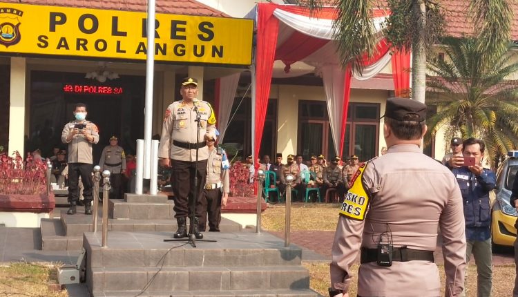 SERAMBIJAMBI.ID, SAROLANGUN – Kapolres Sarolangun AKBP Imam Rachman memimpin langsung Apel Gelar Pasukan Dalam Rangka Operasi Kepolisian Mantap Brata Tahun 2023-2024 Pengamanan Pemilu 2024 mendatang bertempat di Lapangan Mapolres Sarolangun, Selasa (17/10/23).