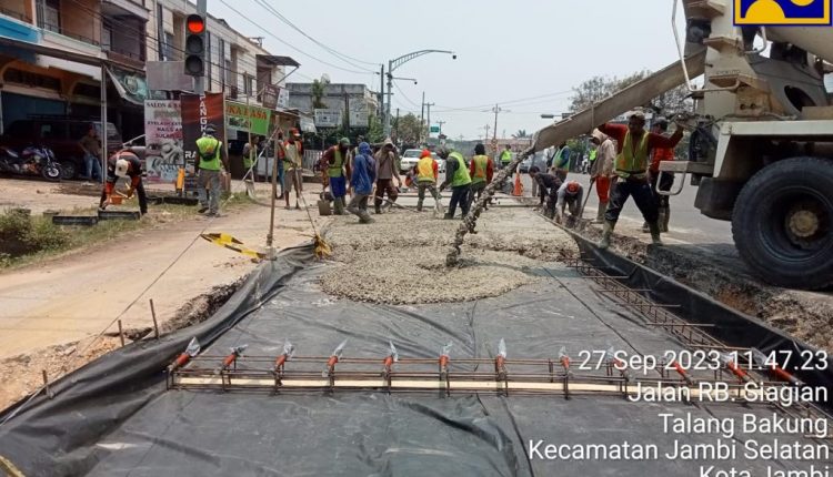 BPJN IV Jambi Cor Jalan di Simpang Tanjung Lumut dan Simpang Gado-gado