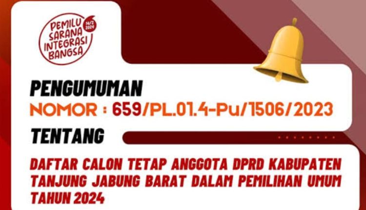 KPU Tanjab Barat Umumkan 421 Daftar Calon Tetap Anggota DPRD di Pemilu 2024