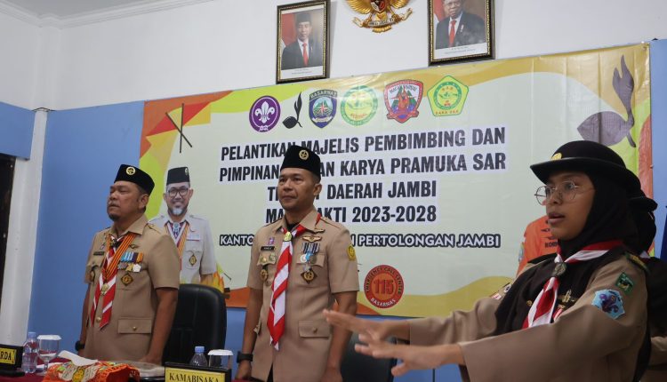 SERAMBIJAMBI.ID, JAMBI – Wakil Ketua Kwartir Daerah Gerakan Pramuka Jambi Drs. Satria Budhi,M.M. Mewakili Ketua H. Sudirman, S.H.,M.H. Secara Resmi melantik dan Mengukuhkan Majelis Pembimbing dan Pimpinan Satuan Karya Pramuka (SAKA SAR) Tingkat daerah Jambi Masa Bakti 2023-2028 pada Selasa, 7 November 2023. Pukul 09.00 Wib, Kegiatan Pengukuhan tersebut dilaksanakan di Ruang Aula Kantor Pencarian dan Pertolongan Jambi dengan dihadiri oleh Sekertaris Kwarda Jambi, Sekbid Abdimas Kwarda Jambi, Ketua DKD Jambi, serta seluruh peserta Pelantikan dan tamu undangan.