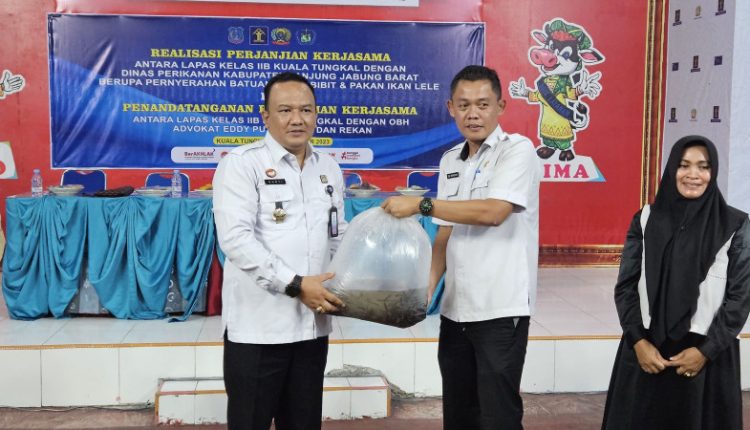 SERAMBIJAMBI.ID, TUNGKAL – Realisasi Perjanjian Kerjasama, Lapas Kuala Tungkal Terima Bantuan Hibah Bibit dan Pakan Ikan Lele Dari Dinas Perikanan Kabupaten Tanjab Barat