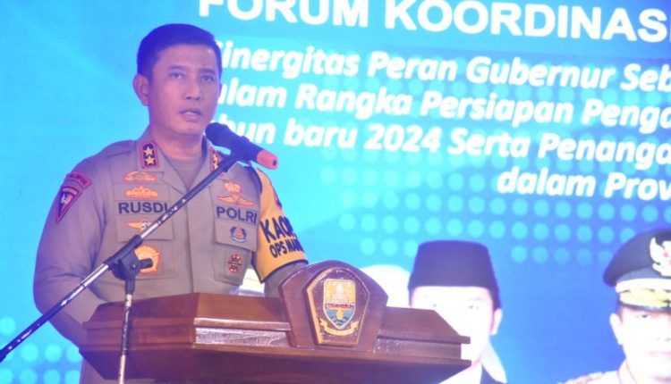 SERAMBIJAMBI.ID, JAMBI – Kapolda Jambi Irjen Pol Rusdi Hartono pimpin Rapat Koordinasi Lintas Sektoral dalam rangka Kesiapan Pengamanan Natal 2023 dan Tahun Baru 2024, serta Penanganan isu-isu aktual di Kab/Kota dalam Provinsi Jambi pada Jum’at, (15/12/2023).