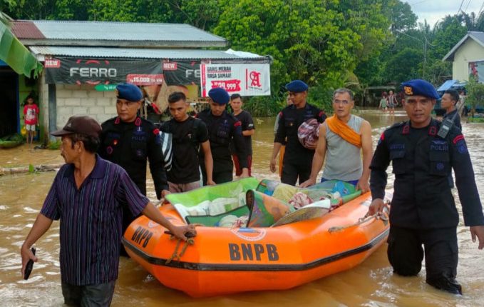 ” Evakuasi Warga terdampak banjir dipimpin Wadanyon C Pelopor Satbrimob AKP Lerius Lase, ” ungkapnya.