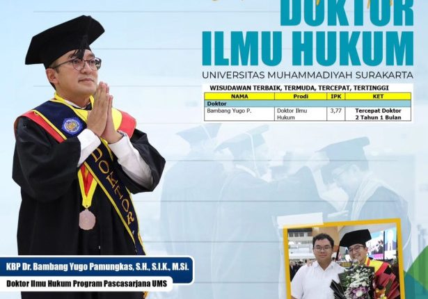 SERAMBIJAMBI.ID, SURAKARTA – Belum sampai satu bulan menjabat sebagai Dirreskrimsus, Kombes Pol Bambang Yugo Pamungkas ternyata merupakan lulusan terbaik, tercepat, termuda dan tertinggi di Universitas Muhammadiyah Surakarta (UMS).