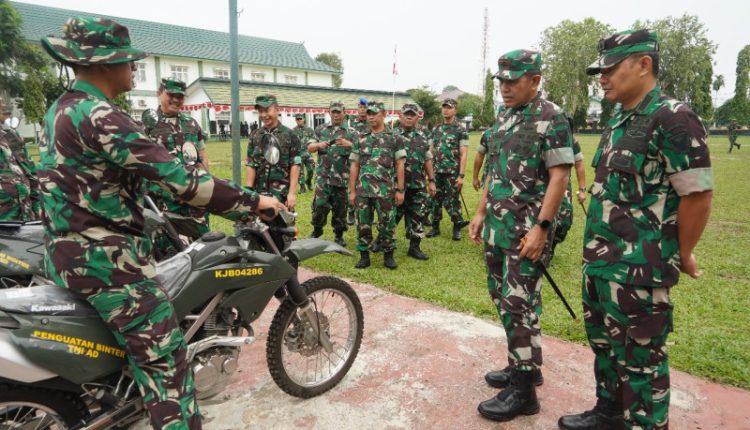 SERAMBIJAMBI.ID, JAMBI – Danrem 042/Gapu Brigjen TNI Rachmad, S.I.P, Pimpin Apel penyerahan kendaraan operasional Satgas penguatan Binter yang didampingi oleh Kasrem 042/Gapu, para Kasi Korem 042/Gapu, Dandin 0415/Jambi, Dandim 0419/Tanjab dan Para Ka Balak Aju Korem 042/Gapu yang bertempat di lapangan Korem 042/Gapu, Rabu pagi (27/12/2023).