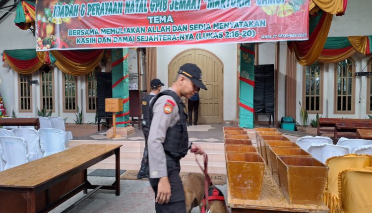 Lakukan Sterilisasi Sambut Malam Pergantian Tahun di Gereja, Ditsamapta Polda Jambi Turunkan Anjing Satwa K9