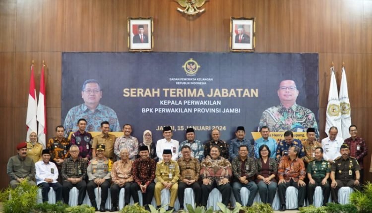 SERAMBIJAMBI.ID, JAMBI – Gubernur Jambi Dr. H. Al Haris, S.Sos. MH mengharapkan sinergi dan koordinasi serta komunikasi Pemerintah Provinsi (Pemprov) Jambi dengan Badan Pemeriksa Keuangan (BPK) RI Perwakilan Jambi terus ditingkatkan dan terjalin dengan baik. Harapan tersebut disampaikan Gubernur saat menghadiri Serah Terima Jabatan (Sertijab) Kepala Perwakilan Badan Pemeriksa Keuangan (BPK) Perwakilan Provinsi Jambi, dari Kepala Perwakilan BPK Perwakilan Provinsi Jambi yang Lama, Rio Tirta,S.E.,M.Acc.,CSFA kepada Kepala Perwakilan BPK Perwakilan Provinsi Jambi yang baru Paula Henry Simatupang, S.E., M.Si., Ak., CA., CFrA., CPA. (Aust), CSFA., ACPA, bertempat di Auditorium BPK Perwakilan Provinsi Jambi, Senin (15/01/2024).