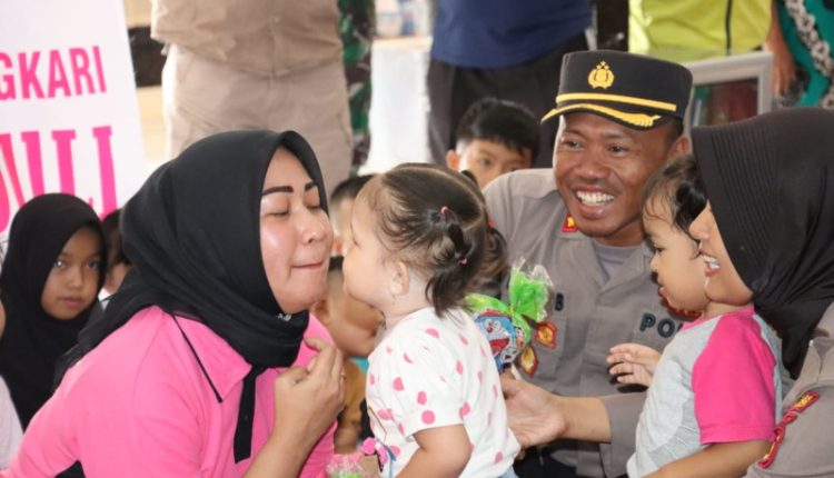 Tak Hanya Salurkan Bantuan, Ketua Bhayangkari Cabang Kerinci dan Kapolres Turut Berikan Trauma Healing ke Warga Terdampak Banjir