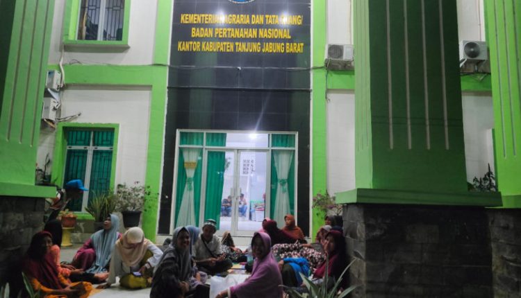 Hingga Malam Hari, Ratusan Massa Kelompok Tani Desa Badang Masih Duduki Kantor ATR BPN Tanjab Barat