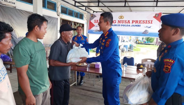 Tak Hanya Bagikan Sembako saat Menyusuri Sungai Batanghari, Dirpolairud Polda Jambi Turut Sampaikan Himbauan Kamtibmas