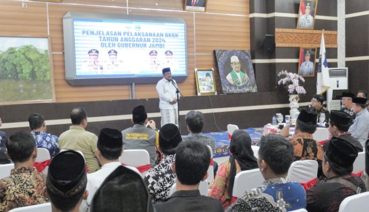 Gubernur Jambi Dr. Al Haris, S. Sos MH menjelaskan pelaksanaan pemberian bantuan keuangan bersifat khusus kepada desa (BKBK) tahun anggaran 2024. Beliau menekankan pentingnya penyusunan rencana bimbingan teknis untuk para kepala desa di wilayah Kabupaten Tanjab Barat. BKBK merupakan program strategis pemerintah pusat yang bertujuan untuk mendorong pemerataan pembangunan desa, meningkatkan kemampuan keuangan desa, mengurangi angka kemiskinan dan pengangguran, serta membantu pelaksanaan urusan pemerintahan desa yang tidak tersedia alokasi dananya.