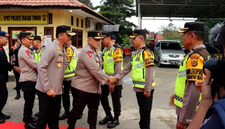 Kedatangan Wakapolda Jambi Brigjen Pol Edi Mardianto turut didampingi Karo Ops Kombes Pol Yudo Nugroho, Dir Samapta Kombes Pol Yohanes Wong Niti KN, Dansat Brimob Kombes Pol Nadi Chaidir, disambut langsung Kapolres Tanjab Timur AKBP Heri Supriawan, SIK, MH bersama Waka Polres Kompol Noprizal, S.Sos, MH, Para PJU, Kapolsek Jajaran, PA Staf, Brigadir dan ASN.